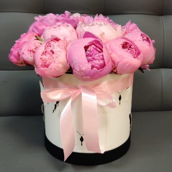 11 пионов в шляпной коробке в Бердске