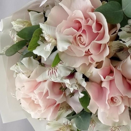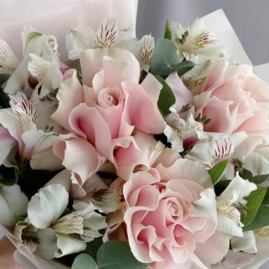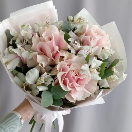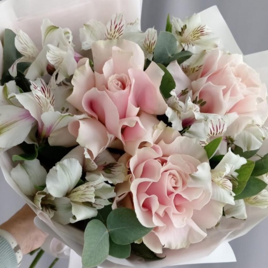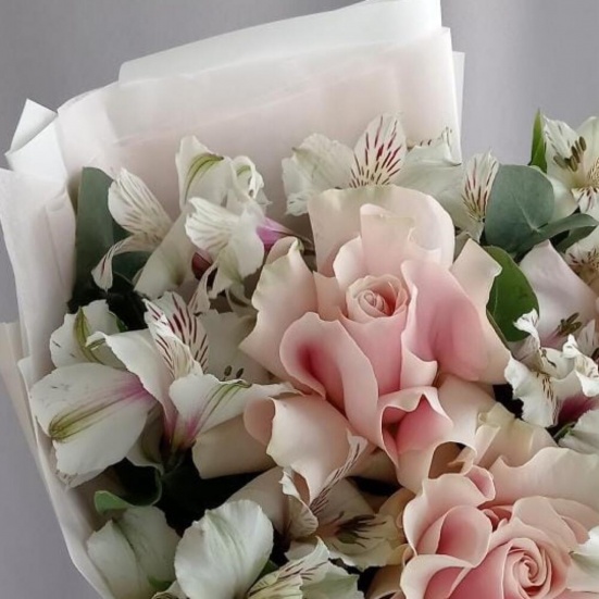 Букет из 3 французских роз и Альстромерии в Бердске