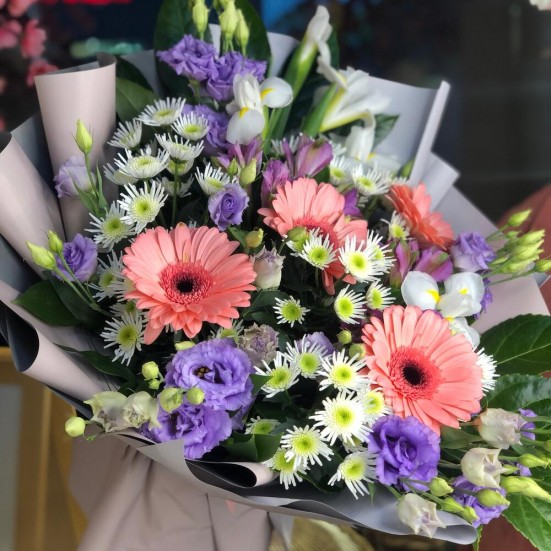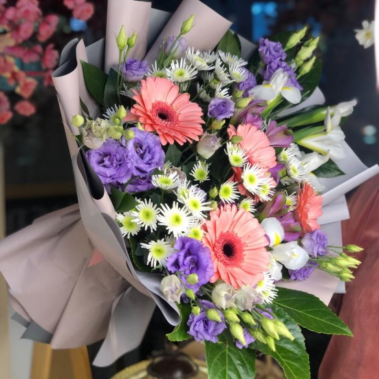 Курьер аккуратно передал букет и пожелал хорошего дня. Мелочь, но приятно. Цветы свежие и красивые.
