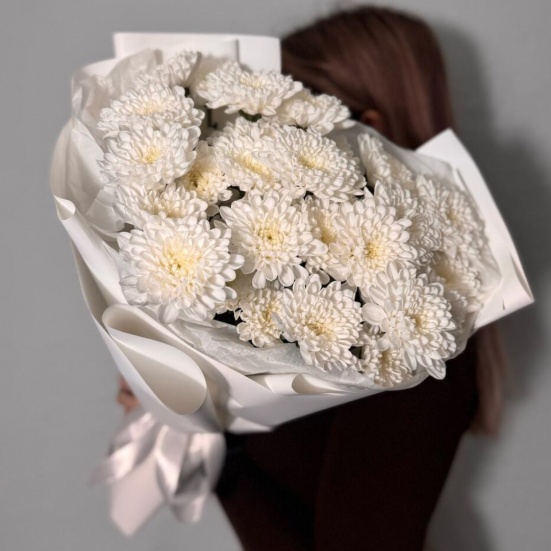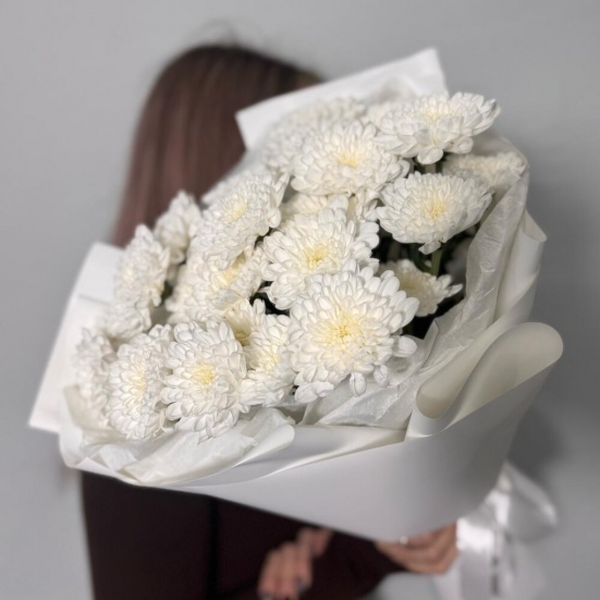 Букет из 5 кустовых белых хризантем в Бердске