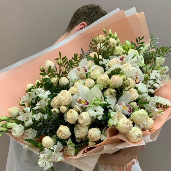 Курьер аккуратно передал букет и пожелал хорошего дня. Мелочь, но приятно. Цветы свежие и красивые.