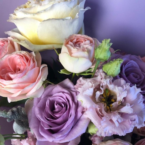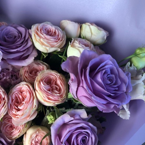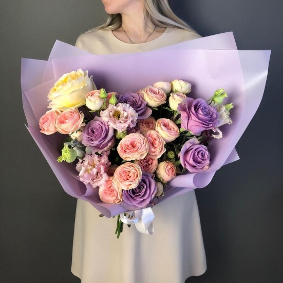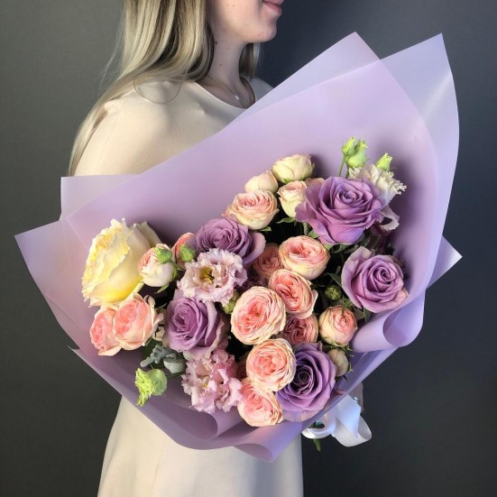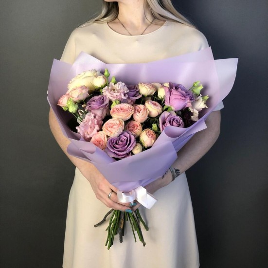 Букет «Эустома и розы пионовидные»