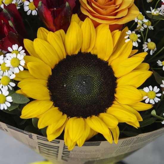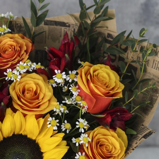 Курьер аккуратно передал букет и пожелал хорошего дня. Мелочь, но приятно. Цветы свежие и красивые.